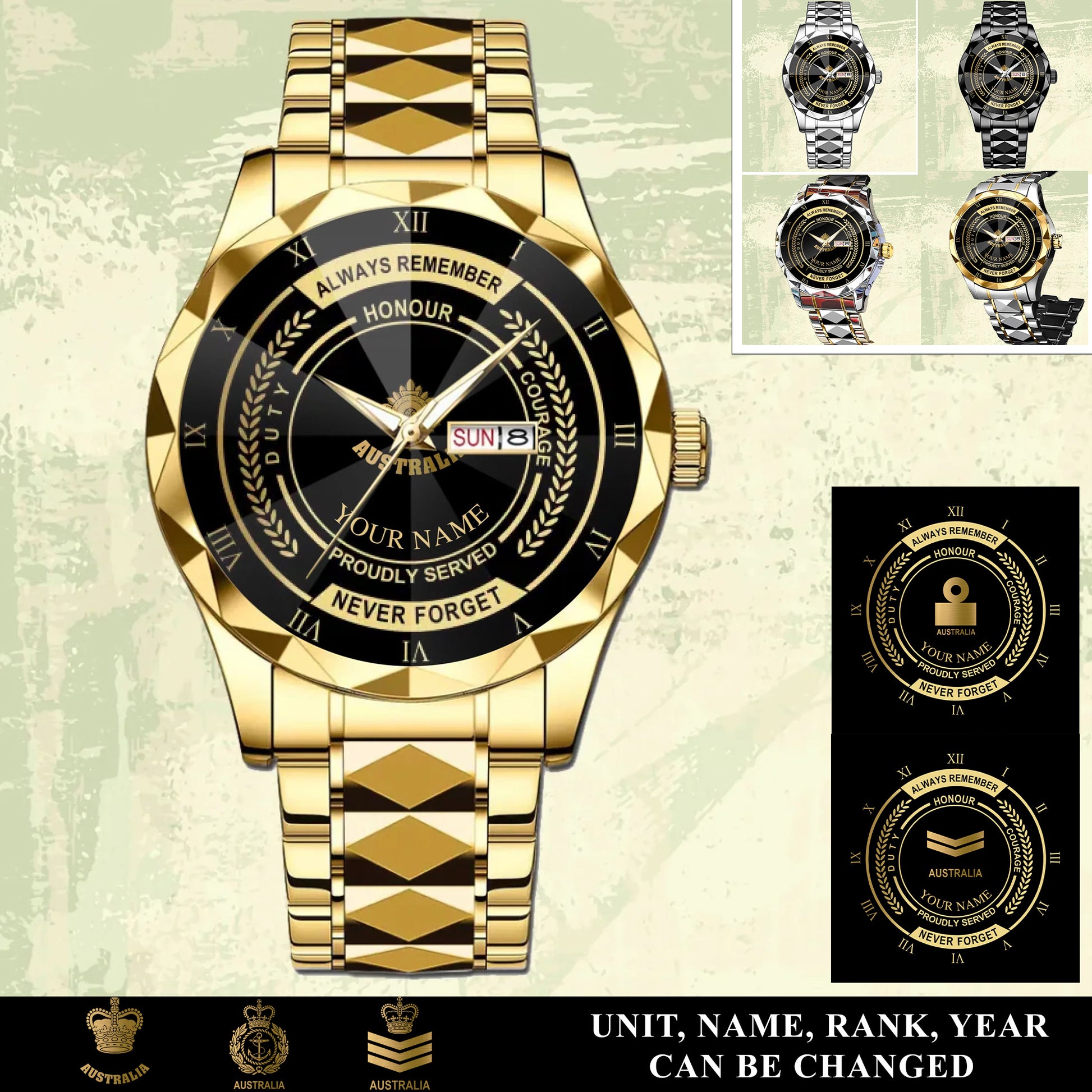 Personalized Australia Soldier/ Veteran With Rank And Name Gentleman Crystal Metal Watch - 17446752