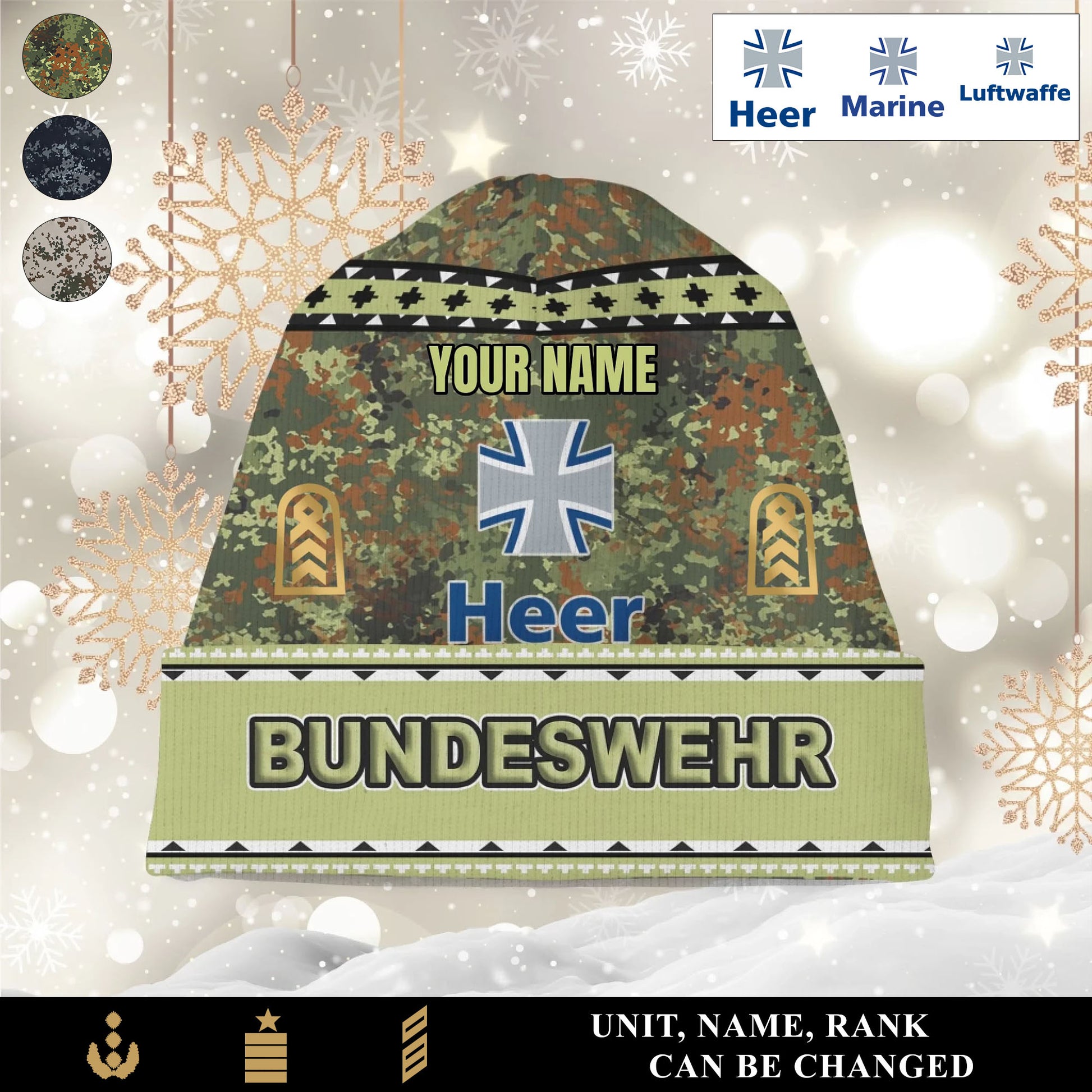 Personalized Germany Soldier/Veteran Camo with Rank And Name Beanie Hat - 1765238400