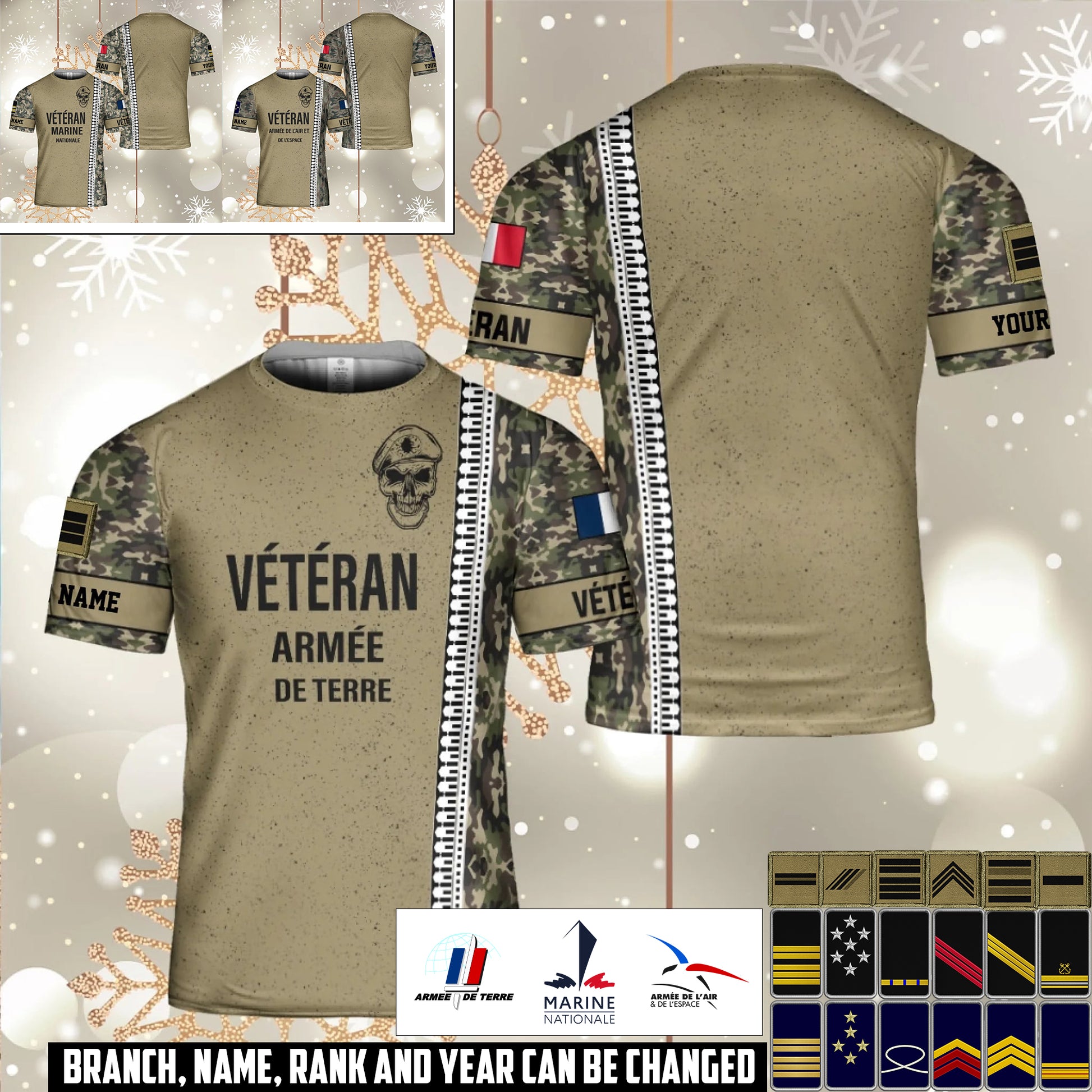 Personalized France Soldier/Veteran Camo with Name and Rank T-Shirt All Over Printed - 17526240