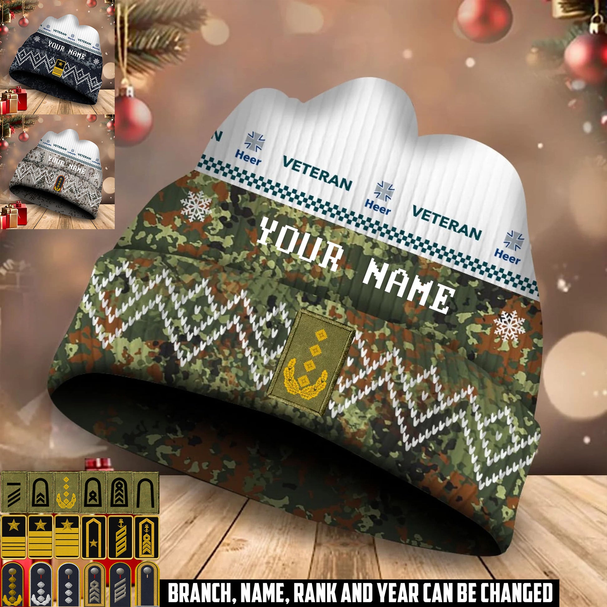Personalized Germany Soldier/Veteran Camo with Rank And Name Beanie Hat - 17590176
